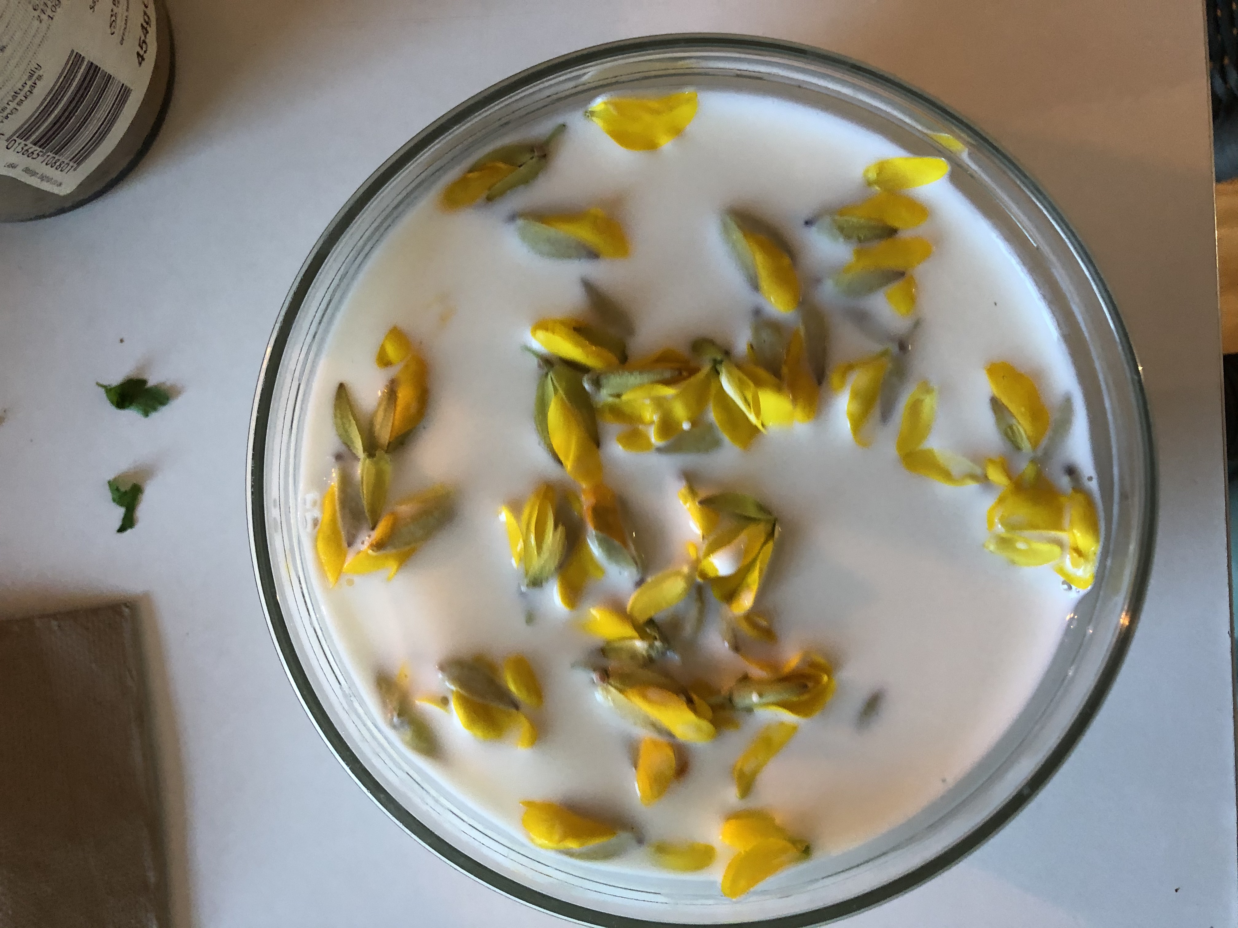 Measure out milk into a bowl with lid and add the gorse flowers and leave overnight to infuse